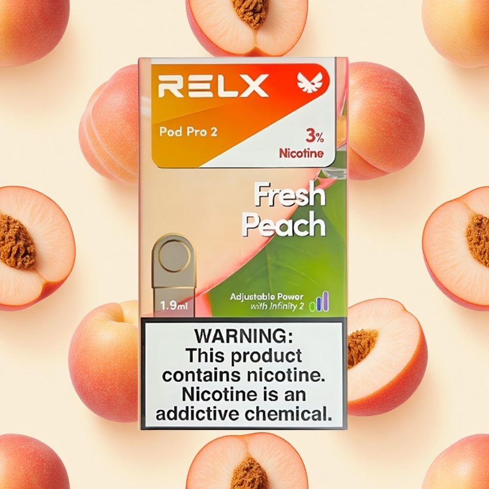 Fresh Peach RELX Pod Pro 2 3% 600 Puffs 1.9ml E-liquid Capacity E-liquid Capacity 3 Voltage Modes