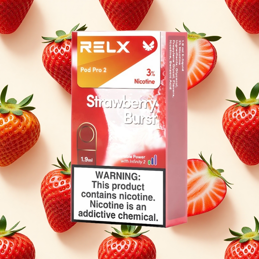 Strawberry Burst RELX Pod Pro 2 600 Puffs 3% Nicotine 3 Voltage Modes